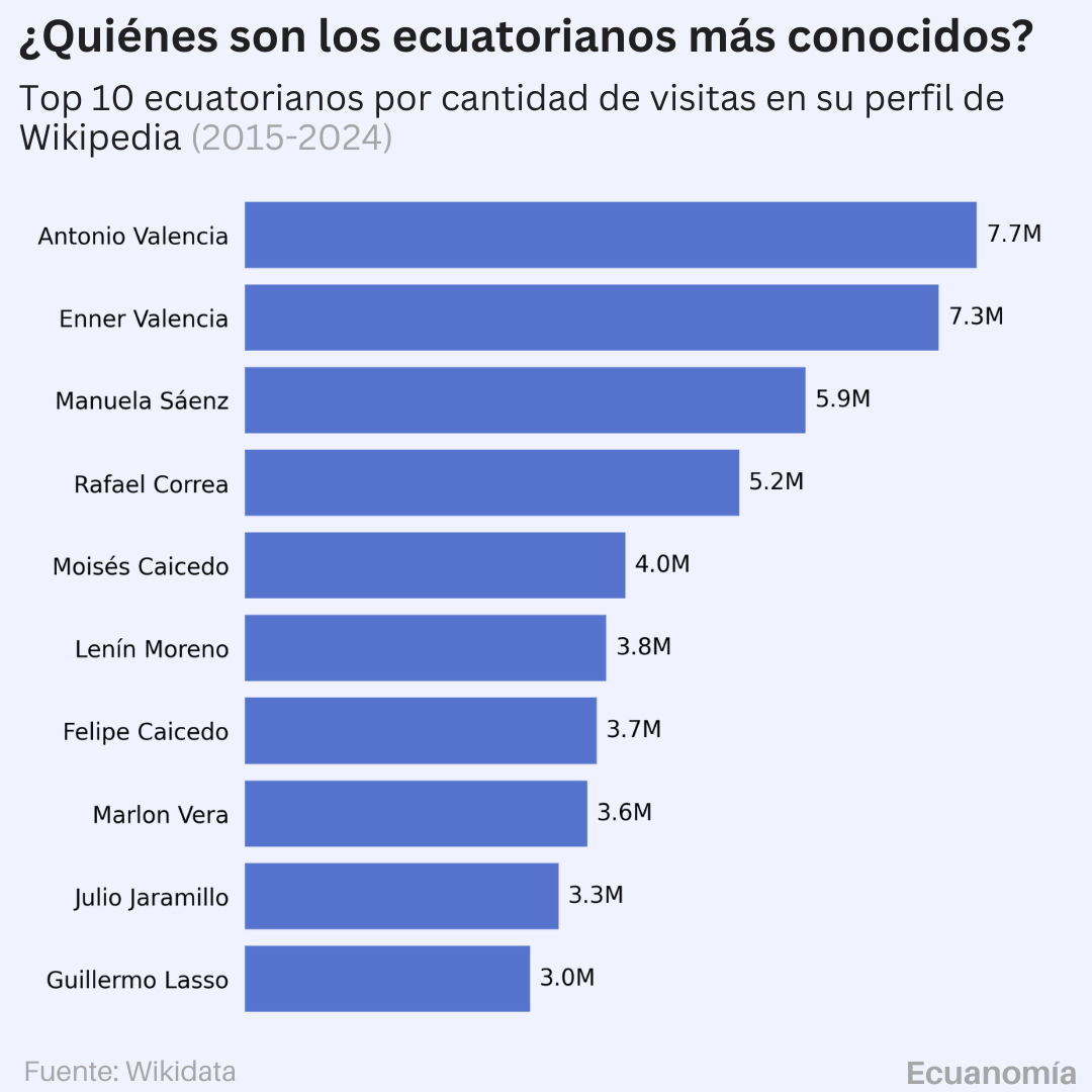 Cerca de 2,700 ecuatorianos tienen un perfil dedicado en Wikipedia.